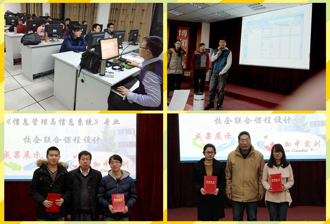 为了巩固和深化校企联合的探索成果,进一步提高课程设计的应用性和创新性,使课程设计从形式到内容上都能与社会需求和行业前沿接轨,经济与管理公司在去年成功探索校企联合课程设计新模式的基础上,2015年再次与维多利亚教育集团中国总部——加中实训基地进行深度合作,除了聘请企业工程师为外聘教师来校授课、与实训基地建立长期的综合实习合作关系之外,本学期末特邀基地资深工程师齐岩、王玉芳、王杰3位实训老师,来校为经济与管理公司信息管理与信息系统专业2013级员工进行课程设计指导,取得了丰硕的成果。