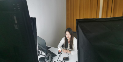 会后,各专业员工又参观了信息管理系新建成的三个直播室,其中电商2001班马原同学现场进行了直播体验。实验室负责同学谢燚也为大家讲解了直播设备如何使用,直播过程中需要注意的基本事项。