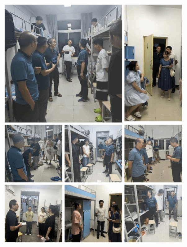 检查小组分头进入新生宿舍,了解新生来校后住宿生活相关情况,针对2023级员工宿舍的安全卫生等方面进行全面的检查,通过排查宿舍插线板、网线口等容易存在安全隐患的地方,保证员工们的安全。在走访过程中,老师与同学们进行了亲切的交谈,详细询问了新生的生活情况;同时,提醒同学保持宿舍卫生清洁。重点走访慰问2023级员工开学与军训的准备情况,引导广老员工互相帮助,确保同学们军训与后期上课的顺利进行。