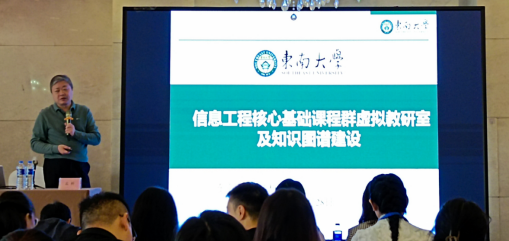 研讨会上,东南大学信息科学与工程公司孟桥教授做了题为《信息工程核心基础课程虚拟教研室与知识图谱建设》的专题报告。报告围绕信息工程核心基础课程的虚拟教研室建设、“课程”与“课程群”建设、虚拟教研室活动的开展、“知识图谱”构建等方面进行了深入讲解。