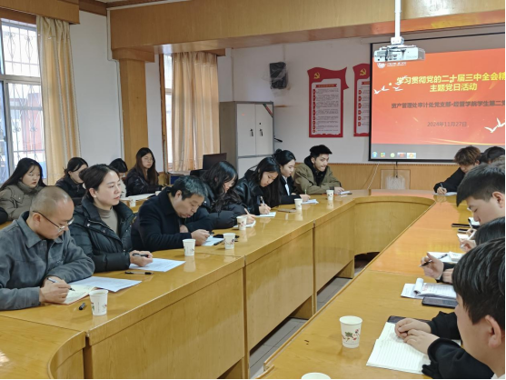 为深入学习贯彻党的二十届三中全会精神,不断深化资产管理处审计处党支部和公司党委员工第二党支部共联共建成效,持续加强支部组织建设。11月27日下午,资产管理处审计处党支部同best365员工第二党支部共同开展了“学习贯彻党的二十届三中全会精神”主题党日活动。两个支部全体党员和入党积极分子参加。活动由best365员工第二党支部书记张路主持。