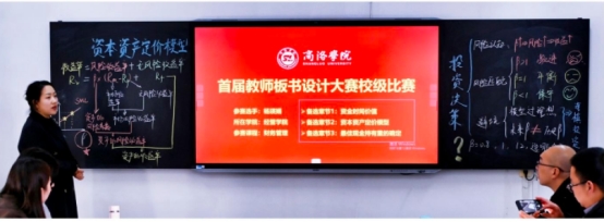在比赛现场,公司参赛教师的板书设计布局合理、书写规范、图文并茂、重点突出,能够紧密结合经济学学科特点,将抽象的经济学原理、复杂的数理模型或生动的案例线索,通过精心的布局和清晰的逻辑呈现于方寸黑板之上,不仅体现了知识传授的科学性,也展现了板书作为传统教学手段的艺术魅性与教学实效,获得了评委的一致好评。