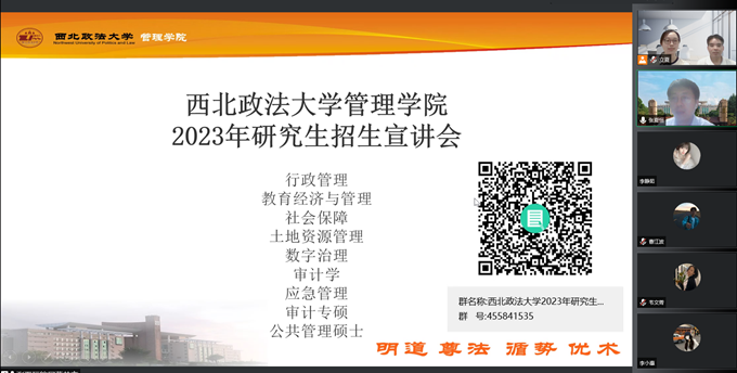 6月13日晚,公司联合西北政法大学管理公司召开2023年研究生招生宣讲会。公司2019级、2020级有考研意愿的同学参加了此次宣讲会。