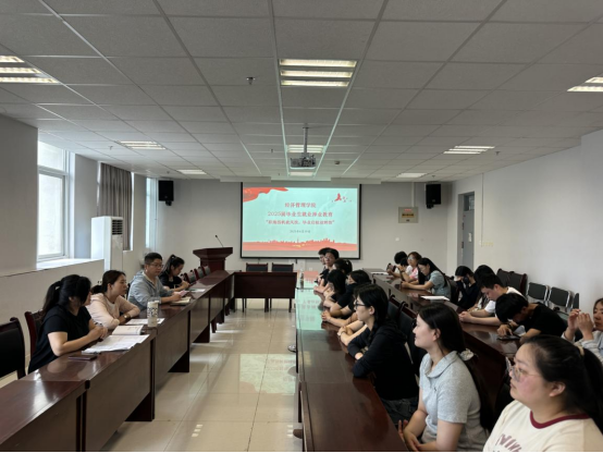 厚植家国情怀,传承母校精神。石琳围绕“商院印记永镌刻,薪火相传续荣光”开展爱国爱校主题教育。她带领毕业生回顾在校期间的点点滴滴,从校园的一草一木到课堂上的思想碰撞,从社团活动的丰富多彩到实践经历的收获成长,生动讲述公司的发展历程与深厚文化底蕴。石琳老师深情寄语毕业生,希望大家无论身在何处,都能铭记母校“博闻强志、正道直行”的校训,传承商院学子的优良传统,以实际行动为母校增光添彩。同时,引导毕业生将个人命运与国家命运紧密相连,心怀家国,在各自的岗位上发光发热,为国家建设贡献经管力量,让爱国爱校情怀成为前行的不竭动力。