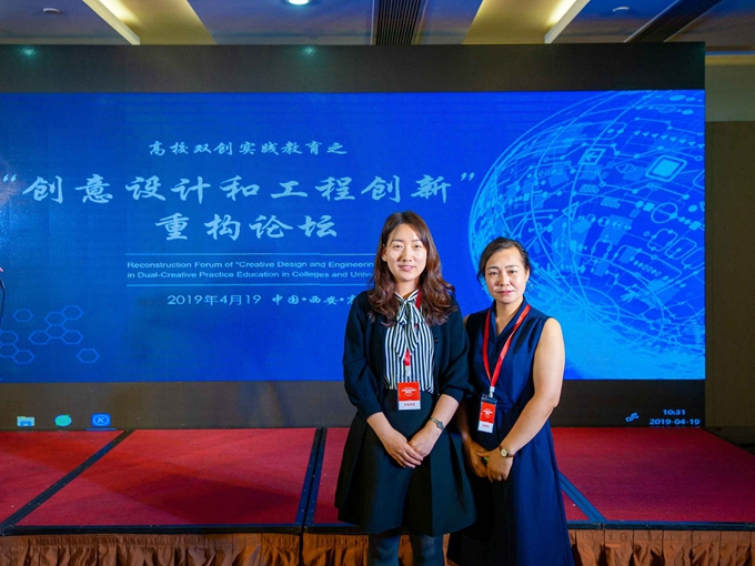 4月19日,公司教师邓淑红、杨瑛娟参加了由可可智度(北京)科技有限公司主办,西安电子科技大学创新创业公司、陕西重构教育科技有限公司、创途在线孵化基地等机构协办的《高校双创实践教育之“创意设计和工程创新”重构论坛》。