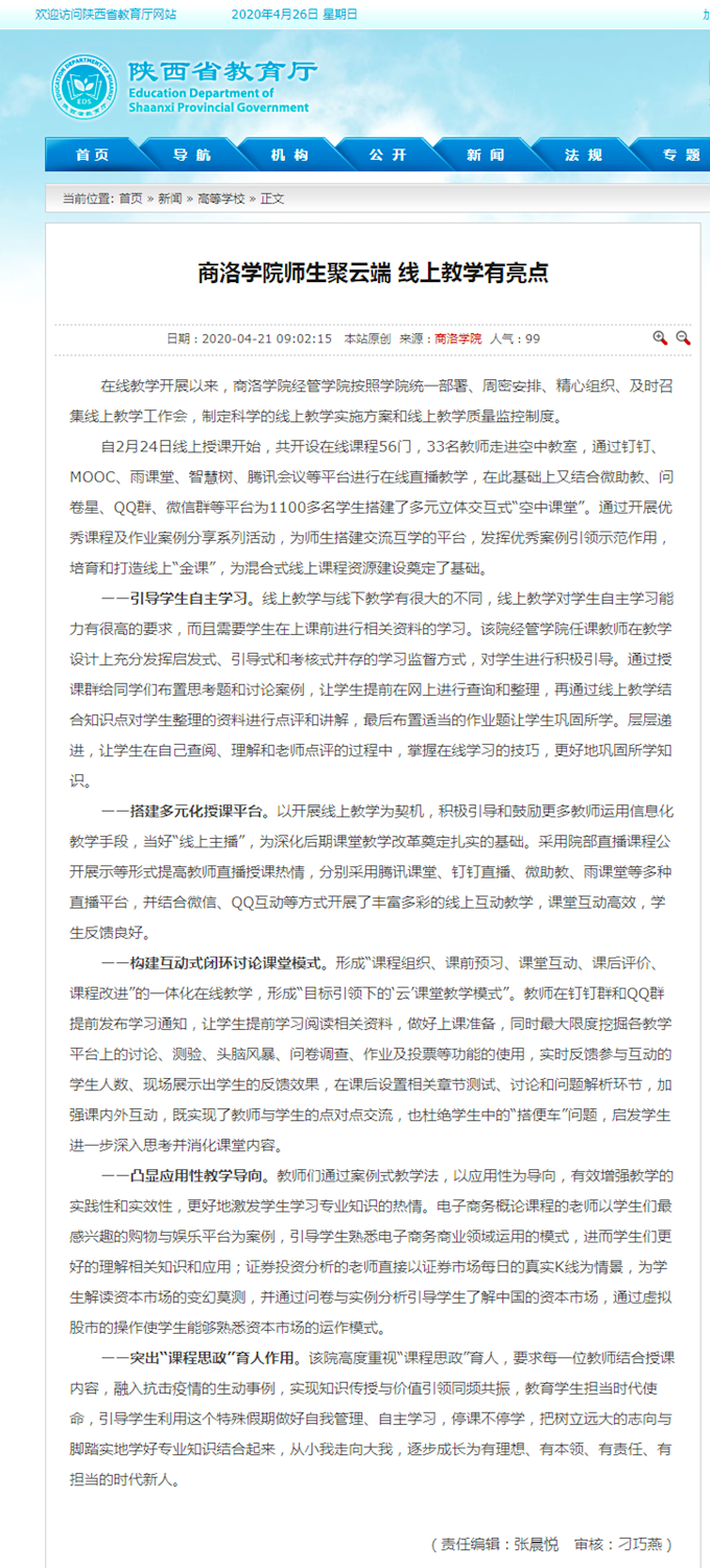 陕西省教育厅:best365官方网站师生聚云端 线上教学有亮点