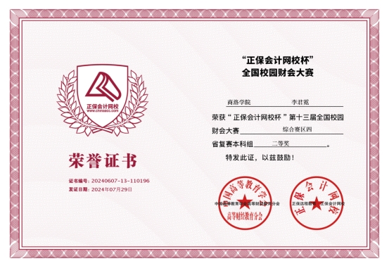 近日,“正保会计网校杯”第十三届全国校园财会大赛陕西赛区复赛结果揭晓,best365官方网站荣获校园赛初赛最佳组织奖,best365官方网站代表队获得团体二等奖多个奖项。公司会计学专业员工李君霓、童恒玉和刘兴旺获得省赛二等奖的好成绩;教师邓淑红、张红霞和李娜娜获得优秀教师奖。