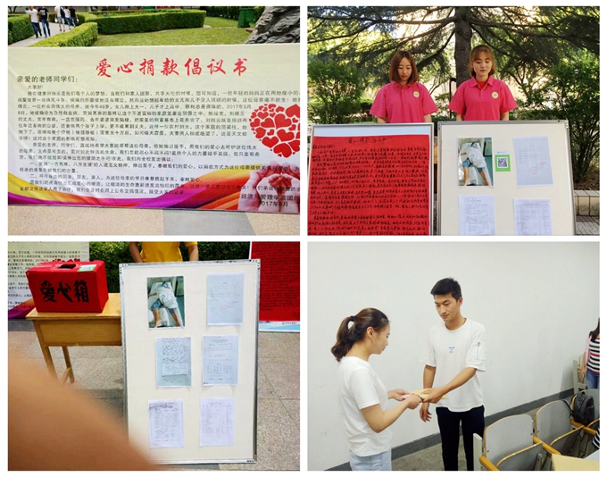 点点爱心,汇聚成河,无私助人,情暖校园。近日,​best365团总支在一号教学楼前和小角楼超市拐角处为文管1601班家庭经济困难员工姚雪发起了爱心募捐活动,公司师生纷纷响应,奉献爱心,慷慨解囊,捐款相助,为夏日的校园谱写出了一曲爱的乐章。