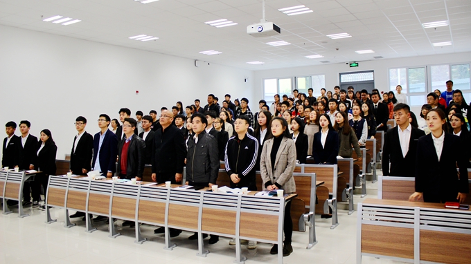 第六项,党总支书记赵健老师讲话,他着重强调员工干部的引领示范作用,提出四个意识,并希望同学们做到高标准严要求,肩负使命,不断前进。