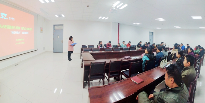 为了深入学习贯彻习近平新时代中国特色社会主义思想,落实《best365官方网站关于创建市级文明校园实施方案》,“弘扬爱国奋斗精神,建功立业新时代”,营造人人知诚信、人人讲诚信的浓厚氛围,倡导爱国守法、明礼诚信、团结友善、敬业奉献的崇高品质,强化教职工诚信意识,提升教职工诚信品质,激发教职工建功立业新时代的积极性和奋斗精神,11月8日晚,公司在新综合大楼10-03举行best365“诚信伴我行”主题演讲赛,公司党总支书记赵健、副经理王怡、周小婷、副经理·副书记贾长安担任比赛评委,演讲比赛由党政办主任郭萌主持。