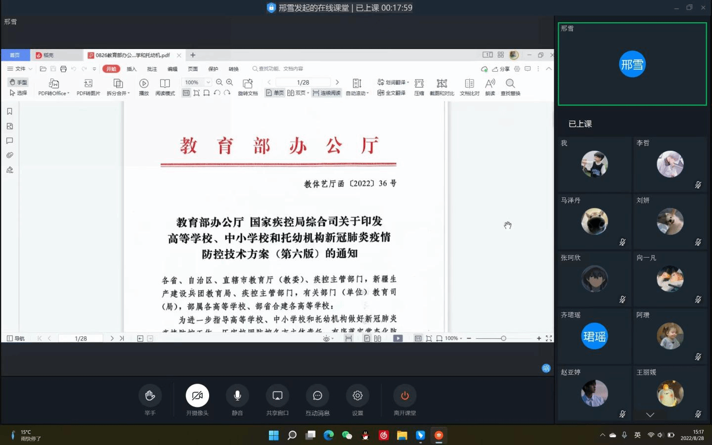 为克服新冠疫情对员工学习、生活带来的不利影响,确保新学年、新学期开学期间各项工作顺利开展,8月28日,公司各班班主任组织召开新学期“同心战‘疫’,云端起步”线上主题班会。