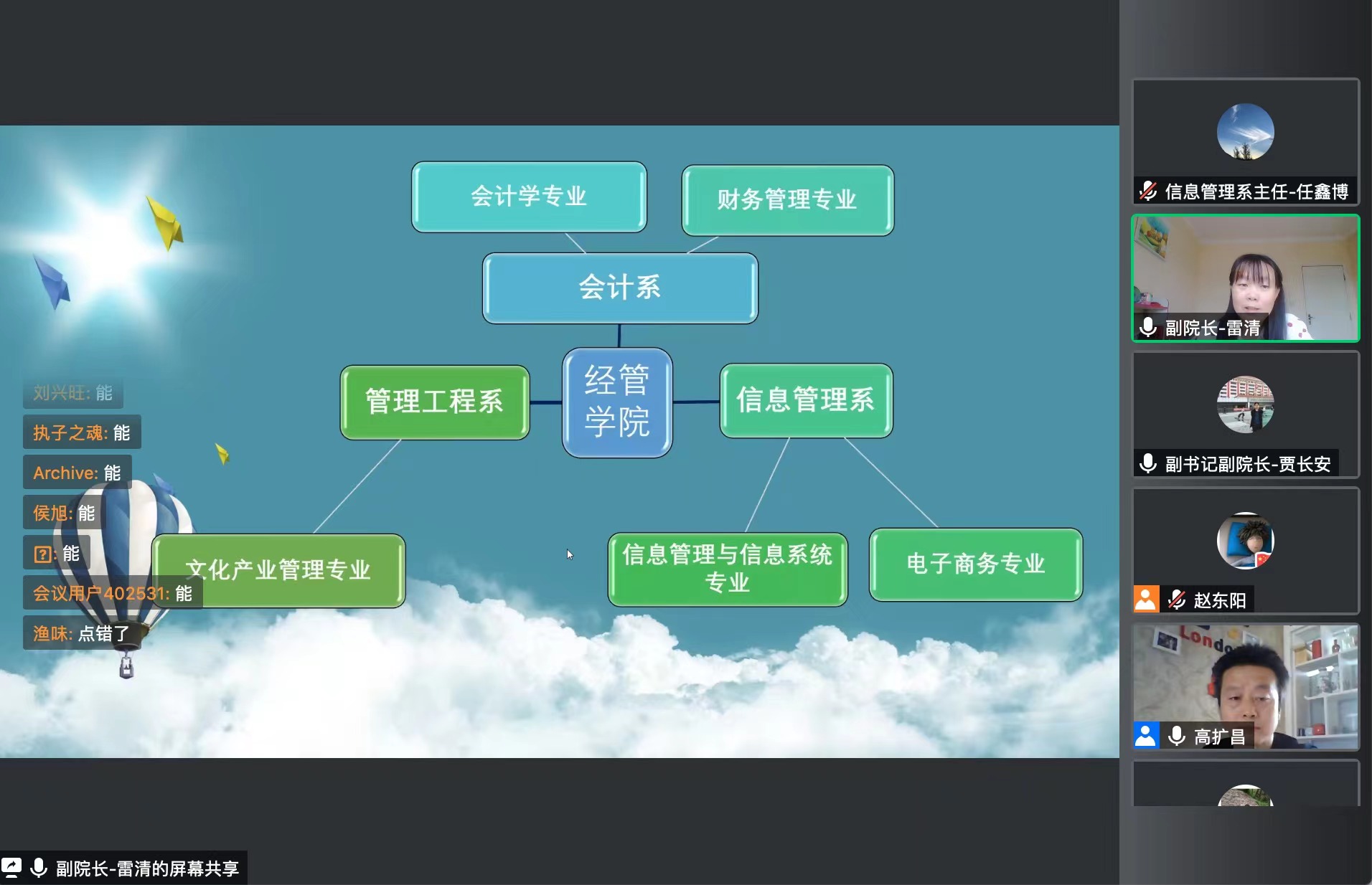 根据公司及公司工作实际,公司于9月4日以腾讯会议形式召开2022级新生线上见面会。经理张林,党委副书记·副经理贾长安,副经理雷清,党政办主任王程,各系系主任,全体辅导员及2022级新生参加了此次线上见面会。会议由公司党委书记高扩昌主持。