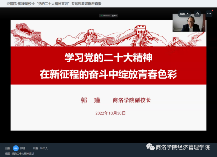 为教育引导广大师生进一步学习领悟党的二十大报告的新观点、新论断、新战略,深入了解掌握党的二十大精神的丰富内涵和精髓要义,让全体师生第一时间把思想和行动统一到党的二十大精神上。10月30日下午2:00,副董事长郭瑾以钉钉在线形式为公司全体师生讲授了“党的二十大精神宣讲”专题思政课,公司党委负责人、全体辅导员、全体员工收听了专题思政课。
