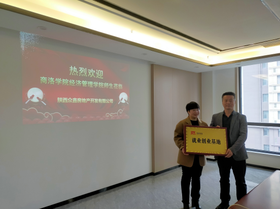 公司党委书记高扩昌、辅导员石琳和任倩带领有意向在陕西众鑫房地产开发有限公司实习就业的6名2023届毕业生,赴陕西众鑫房地产开发有限公司,举行best365官方网站•陕西众鑫房地产开发有限公司就业创业基地签约及授牌仪式,同时进行实地参观学习、现场座谈活动。