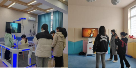 各班心理委员带领班级员工代表前往心理健康教育中心,有序参观和体验了各项项目,参观体验期间,员工代表听从引导员和讲解员安排,能够佩戴口罩,保持现场秩序稳定,爱护中心设施,维护环境卫生。员工对VR游戏体验、情绪宣泄各类器材、正念冥想、艺术心理体验、放松减压和团辅游戏等项目均产生十分热情的兴趣体验,能够积极投入到各项项目活动体验中。