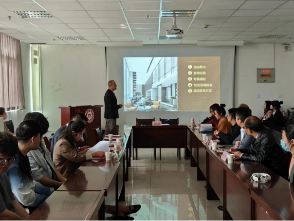 商洛皇冠假日酒店总经理金宗亮代表公司表示愿意在今后工作中同best365加深校企合作,努力实现企业用人与公司培养人的共赢局面,详细介绍了公司的经营范围、发展规模、用人要求、人才培养晋升渠道等方面,期望并欢迎best365官方网站优秀毕业生的加入。