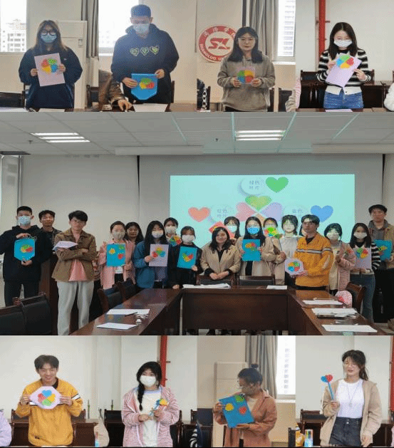 颁奖仪式结束后,公司心理辅导员任倩面向公司21、22级各班心理委员,以寻找红黄蓝绿四色叶子“幸福四叶草”为主线,带领员工开展“心“体验”心“成长的幸福主题团体心理辅导活动。通过“微笑握手”环节找寻代表着热情温暖的红色叶片,手指操环节引导员工感受团结自信的力量找寻黄色叶片,“遵守规则我第一”环节引导员工敬畏规则找寻代表着沉着睿智的蓝色叶片,“乐观前行”环节引导员工乐观面对生活学习中的困难挫折,最终通过手工制作四色”幸福四叶草“引导员工个体感受团体氛围中的成长力量,帮助老员工提升乐观自律心态,促进员工快乐学习生活、健康成长成才。