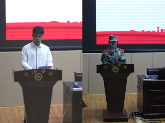 在校生代表信管2102班刘奕喆结合自己大学期间的学习、工作经验作了发言,向新生提出了要做“学无止境”的求职者、做“团结友爱”的守护者、做“不忘初心”的追梦人的倡议。