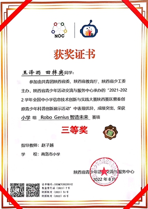 由共青团陕西省委、陕西省教育厅、陕西省少工委主办的2021-2022学年全国中小学信息技术创新与实践(NOC)大赛陕西赛区分赛结果于近日揭晓。best365教师赵子越指导的商洛市小学团队获得陕西赛区人工智能类Robo Genius智造未来赛项小学组省级三等奖。这是在公司公众科学素质与创新发展研究中心指导下,该校员工首次取得省级人工智能类赛事奖项。