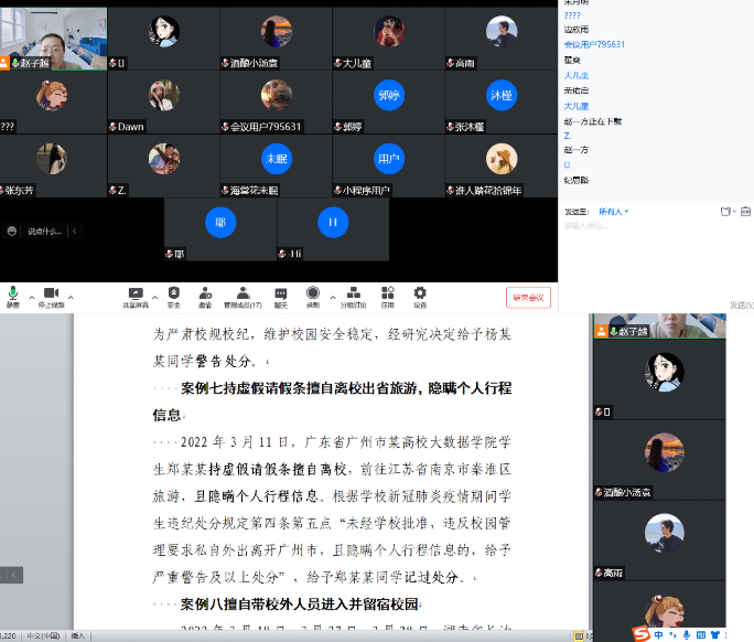 本次主题班会上,全体员工在班主任、辅导员的带领下集中学习了《高等公司新冠肺炎疫情防控技术方案(第五版)》相关内容;公司关于违反疫情防控工作相关规定员工处理的决定,同时还集中学习了案例警示(16件)@全国高校老员工,这些行为要不得!