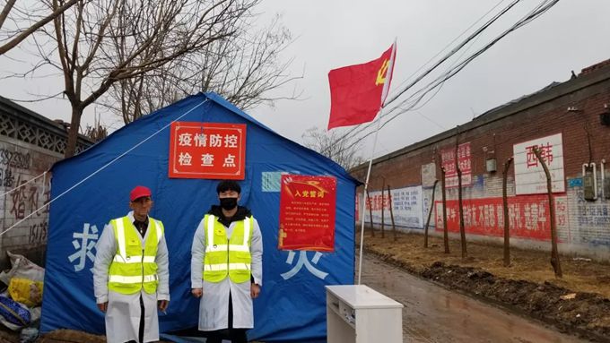 老家在河北省保定市安国市明官店乡西韩村的袁辉,主动报名本村疫情防控工作。自2020年2月初开始在疫情防控站担任值班任务,对进出村人员进出村原因盘问以及个人身体健康情况和个人基本信息的登记,尤其是外来人员的清查更为仔细。每天早上8:00准时到西村口疫情防控检查点,身着专用服装“白大褂”、执勤袖箍开始一天的工作,从早上一直到晚上19:00值夜班人员接班,做好换班工作后才离开。期间很多人问“为什么来执勤?为什么不在家待着?”袁辉:“叔,阿姨。我作为老员工党员,在国家突然暴发疫情,在党和人民需要的时候就不能在家待着,就要主动站出来做些事情,所以我主动报名参加咱们村疫情防控工作了。”