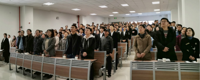 为继续深入贯彻落实党的十九大精神和习近平新时代中国特色社会主义思想,弘扬爱国情怀,奋斗精神,引导员工自觉践行社会主义核心价值观,珍惜时光,努力学习,不懈奋斗,矢志报国。11月13日下午,公司在综合教学楼多媒体21教室举行主题为“弘扬爱国情 奋斗中国梦”的道德讲堂。公司全体教职工、党员、预备党员、员工代表230余人参加了本次道德讲堂。