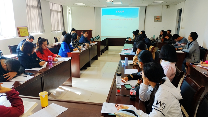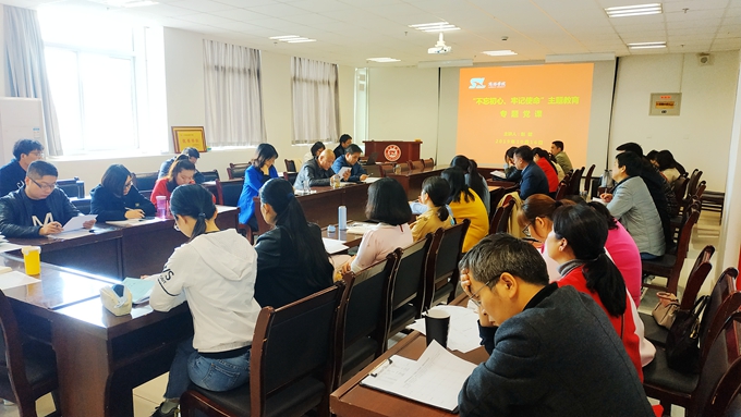 赵健同志从习近平总书记关于“初心”和“党的使命”的重要论述入手,向全体教职工交流了自己的学习体会。赵健指出,全体师生党员要加强学习,用习近平新时代中国特色社会主义思想武装头脑,学原著悟原理,准确把握“初心”的深刻内涵,明确和牢记党的使命,使“不忘初心、牢记使命”成为党员师生的一种自觉。赵健就如何做到“守初心”提出三点要求:一是加强理论学习,提高政治站位;二是增强“四个意识”,坚定“四个自信”,做到“两个维护”;三是履职尽责,做好自己的本职工作。