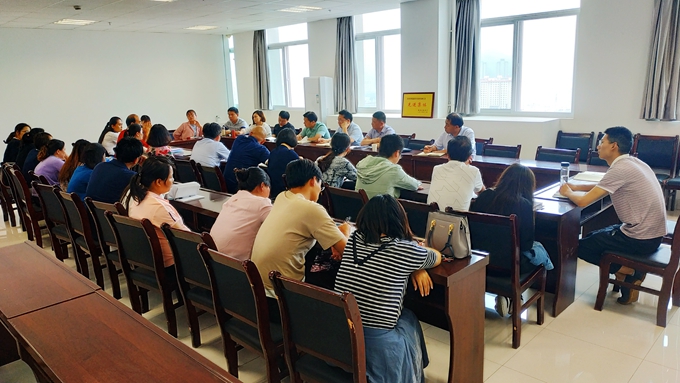 【党政要闻】董事长范新会到公司调研指导工作 发布时间:2019-06-25 点击: 6月24日,董事长范新会、教务处处长李超、科技处处长王新军、人事处处长刘勇到公司调研绩效分配、聘期考核、新一轮岗位聘用、一流公司建设等工作,悉心听取了公司全体教职工的意见和建议。 调研中,公司教职工结合工作、学习和生活实际,踊跃发言,积极向公司反馈意见,建言献策。调研结束后,范董事长向公司教师简要介绍了公司的发展现状和目标要求,勉励全体教师爱岗敬业,追求卓越,以一流的业绩为公司的改革和发展做出新的更大的贡献。 (图文/郭萌 编辑/郭萌 审核/王怡)