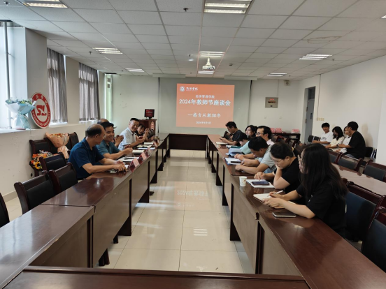 金秋时节,硕果累累。在第40个教师节来临之际,9月9日下午,公司召开主题为"感言从教30年"的庆祝2024年教师节座谈会。教龄超过30年的老教师、各系主任、公司教师及辅导员代表参加座谈会。会议由公司党委书记高扩昌主持。