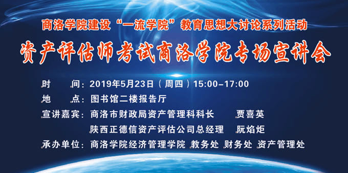 在全院上下热烈开展建设“一流公司”教育思想大讨论之际,5月23日下午,公司邀请商洛市财政局资产科科长贾喜英、商洛华泰资产评估公司总经理任建志到公司开展资产评估师考试专场宣讲会,宣讲会由best365副经理周小婷主持,副经理王怡致欢迎辞,公司党总支书记赵健、副经理·副书记贾长安、商洛市财政局资产科副科长翁珺、公司职能部门相关同志、best365全体教职工和会计专业员工参加活动。