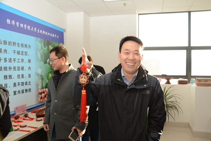在体验中心开业暨揭牌仪式开始前,彭书记、职能部门领导与企业嘉宾兴致勃勃地参观了体验中心,并在双创团队成员的引导下进行了购物体验。