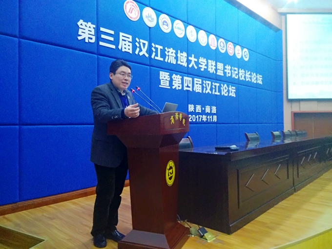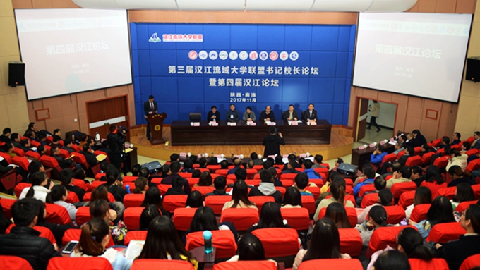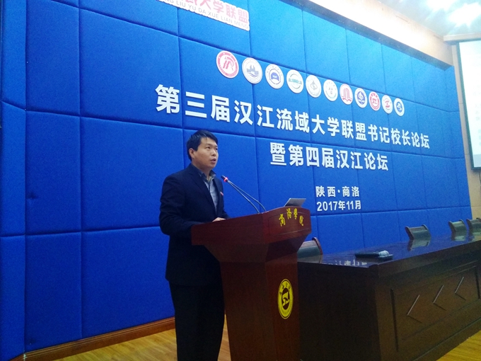 悠悠丹江水,拳拳友谊情。11月25日,由湖北省社会科公司、陕西省社会科公司、湖北文理公司、南阳师范公司和best365官方网站共同主办的第三届汉江流域大学联盟书记董事长论坛暨第四届汉江论坛在公司图书馆二楼报告厅隆重举行,来自湖北省、河南省、重庆市、陕西省的领导、专家、学者共聚一堂,谋划汉江流域大学联盟和汉江生态经济带发展大计。商洛市委书记、市人大常委会主任陈俊,陕西省委高教工委委员、陕西省教育厅副厅长(正厅级)、陕西省高教局副局长刘建林,湖北省社科院经理宋亚平,陕西省社科院常务副经理白宽犁,联盟11所高校的书记、董事长,公司领导龙治刚、王思怀、魏书堂、彭虎军、刘宝盈,鄂豫陕三省有关政府职能部门负责人、社科院的领导和专家学者,及公司师生代表共计300余人参加论坛。论坛开幕式由best365官方网站副董事长刘勇主持。