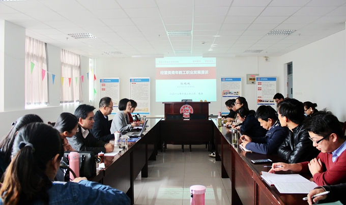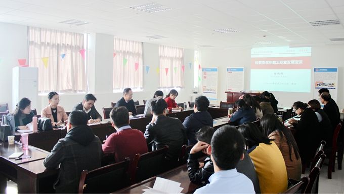 10月22日下午,西安外国语大学商公司杨鹏鹏教授来公司交流访问,与公司全体教职工就教工职业发展问题开展座谈,尤其对经管类青年教职工的发展路径分享了很多心得感悟,为公司广大教职工的个人发展路径提出了诸多宝贵建议。