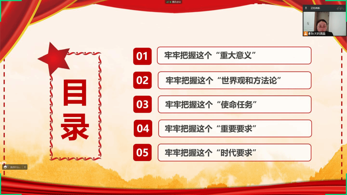 11月30日下午,公司教工第一党支部通过腾讯会议开展“不忘初心、牢记使命”线上主题党日活动。副董事长郭瑾同志以普通的党员身份参加本次活动并向支部全体党员宣讲党的二十大精神。公司教工第一党支部全体党员参加活动。