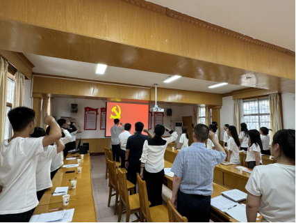 活动在庄严的国歌声中拉开帷幕。首先是重温入党誓词,在best365员工第二党支部优秀党员杨张源同志的带领下,全体党员面向党旗,举起右手,庄严宣誓,再次接受入党誓词的洗礼,进一步坚定理想信念,不忘入党的初心使命。