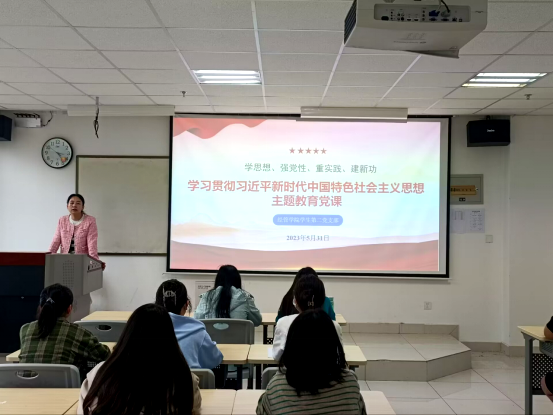 张路同志从“开展2023年主题教育重要意义、总要求、根本任务”“习近平新时代中国特色社会主义思想主要内容”“习近平新时代中国特色社会主义思想的鲜明特质”“学习贯彻二十大精神、踔厉奋进新征程”四个方面进行了讲授,强调在主题教育学习中要聚焦目标任务、突出问题导向、注重实际成效。在党课讲授中引导党员全面理解习近平新时代中国特色社会主义思想核心要义和实践要求,在融会贯通上下功夫,形成具有指导意义、切实可行的工作方法,真抓实干、敢于担当;做到学以致用、用以促学、学用结合、知行合一;以“学习”为先,更以“贯彻”为重,把习近平新时代中国特色社会主义思想转化为提升支部战斗堡垒作用、促进党员先锋模范作用发挥提质增效的具体实践。