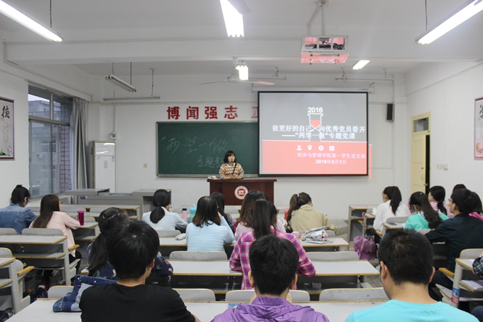 按照best365“两学一做”学习教育安排,2016年6月1日晚19:00,best365员工党支部主题为“做更好的自己,向优秀党员看齐”的“两学一做”专题党课于1-405和1-406教室如期举行,本次党课由员工支部书记赵文英和任倩主讲,59名老员工党员参会。