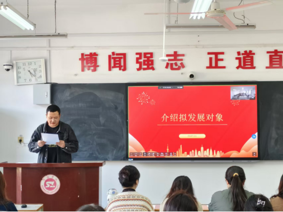 参会教师党员赵子越、薛羽蒙、陈姣、任倩分别对每位拟发展对象进行了提问,参与者在答辩中以饱满的热情和认真的态度,回答了参会教师提出的有关党的问题,以及入党动机、对党认识理解以及如何在日后生活中模范带头等进行提问。此环节对拟发展对象对党的理论知识的掌握以及日常学习工作中的综合能力进行了考察。随后进行选举环节,由党员同志陈浩、郭津彤监票,党员庞蕊、张铭钰计票,整个过程公开、公正、公平。