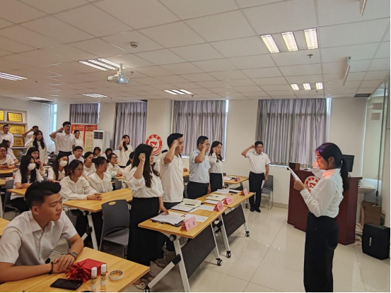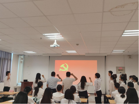 党旗为证立誓言,青春向党启新程。入党宣誓仪式现场庄严肃穆,新发展党员在领誓人的带领下,高举右拳面向党旗庄严宣誓,字字铿锵的誓言饱含着对党的无限忠诚与为共产主义事业奋斗终身的坚定决心。全体党员重温入党誓词,在铮铮誓言中回望初心,进一步坚定理想信念,强化使命担当。这场仪式不仅是新党员的“政治成人礼”,更激励着全体党员永葆先锋本色,以实际行动践行对党的庄严承诺。