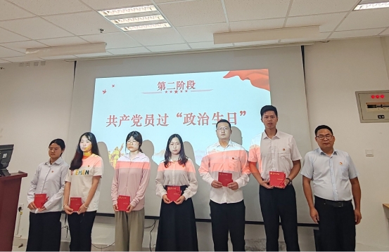 政治生日忆初心,薪火相传共成长。“集体政治生日”环节温情满满,公司党委领导为党员代表颁发承载着组织关怀与期望的政治生日贺卡。过政治生日党员代表王明昊发表感言,分享入党初心故事,回溯从思想觉醒到光荣入党的成长历程。政治生日是党员身份的特殊印记,通过全体党员过政治生日,提醒全体同志牢记第一身份是党员,以初心照亮前行之路,用行动诠释使命担当。”通过这一仪式,党员们在思想碰撞中汲取奋进力量,凝聚起共同成长的强大合力。