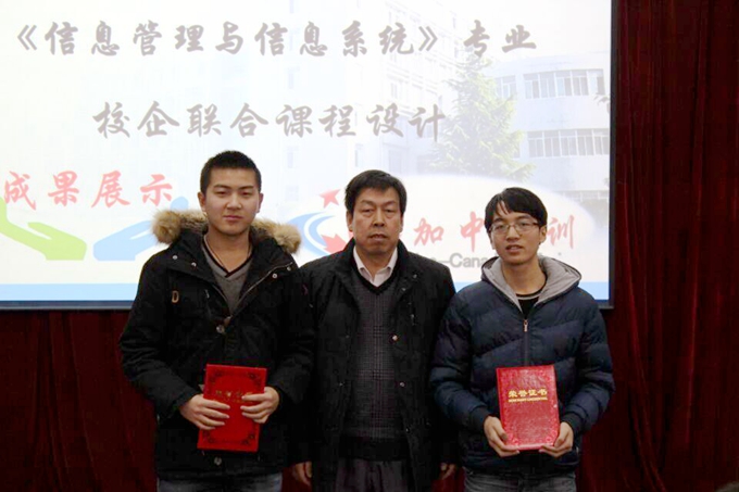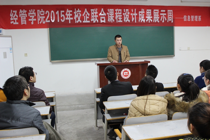 2015年12月31日上午,经济与管理公司信息管理系在一号教学楼报告厅二举行了“校企联合2015课程设计成果展示”报告会,教务处处长李超、经济与管理公司经理樊景博、党总支书记鲁绵茸莅临指导,加中指导教师及课任教师樊景博等担任评委,经济与管理公司全体教师和信管13级、15级全体员工听取了课程设计小组成果汇报。在汇报中,同学们以细致精美的PPT展示、精益求精的编程设计、精彩纷呈的策划表演为课程设计交上了一份满意的答卷,与此同时,通过课程设计实训的历练,同学们进一步激发了探求求知的热情,增强团队合作的默契,提升了专业能力和社会实践能力,为同学们日后走上工作岗位提升社会竞争力做了很好的铺垫。