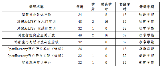 · 核心课程模块:包括鸿蒙系统应用与硬件开发、数据分析与可视化、智能终端开发等。
